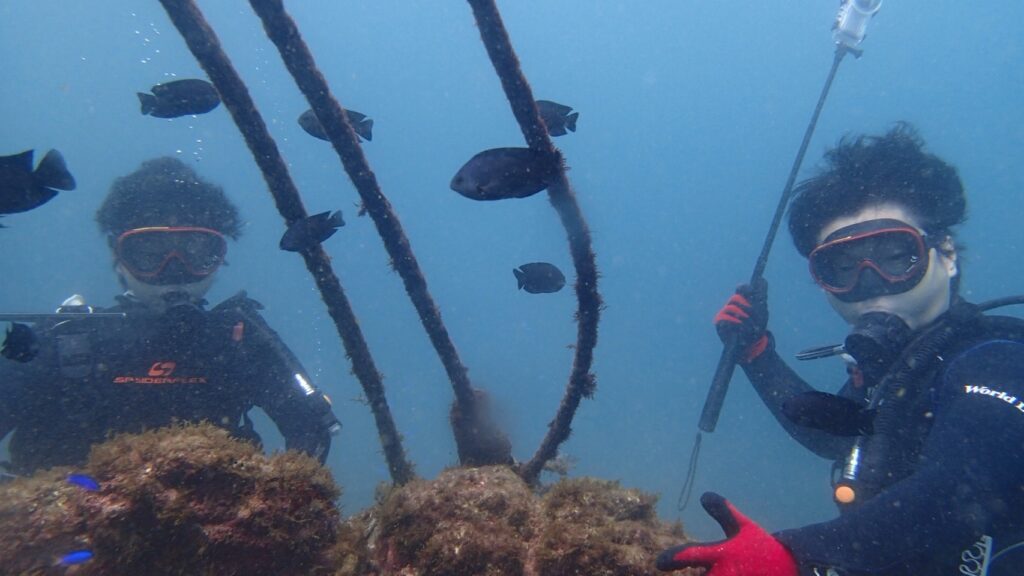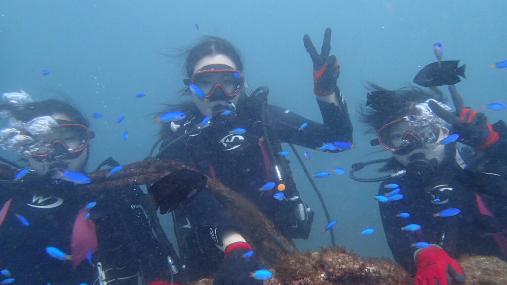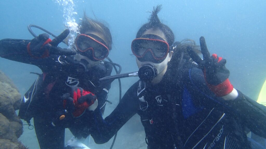 海の中は透明度、水温も上がり、とにかくキレイ。魚も沢山います。水面で練習している時から、魚の群れが見れたりとても楽しい海になってきました。