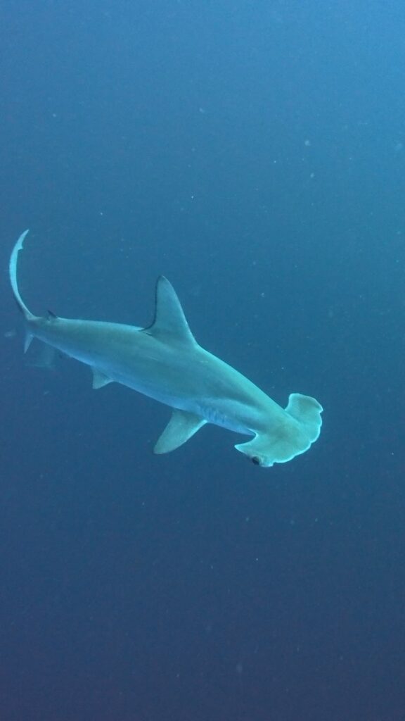 昨日に引き続きとても青く、群れでハンマーヘッドシャークを見ることができました