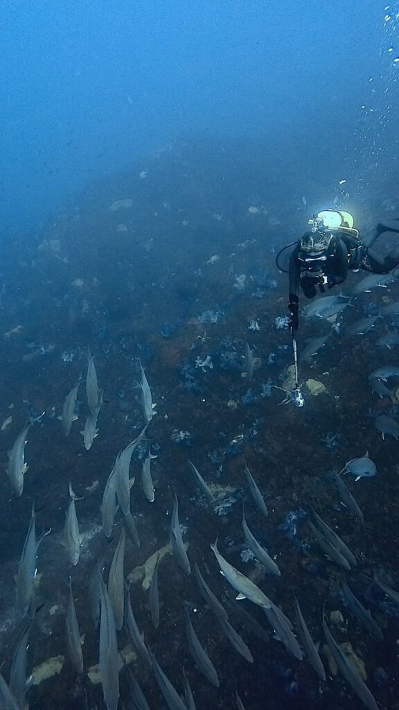 オオニベの群れやカンパチと戯れ、