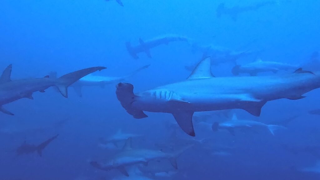 夏のような青い潮にのっていくと100匹を超える大きな群れが目の前を泳いでいく