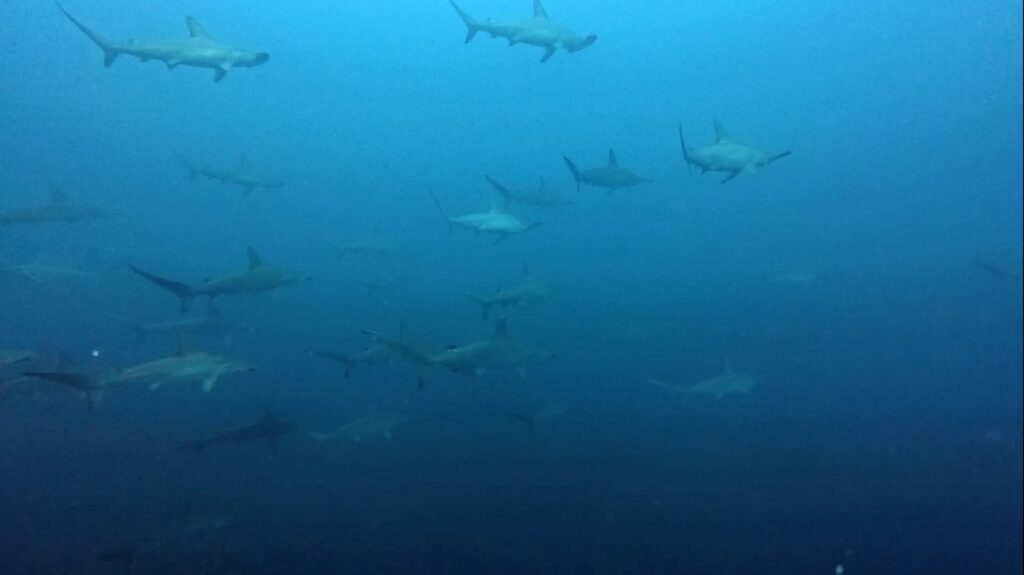 In that clear water, we enjoyed seeing another impressive school of hammerheads cruising by.