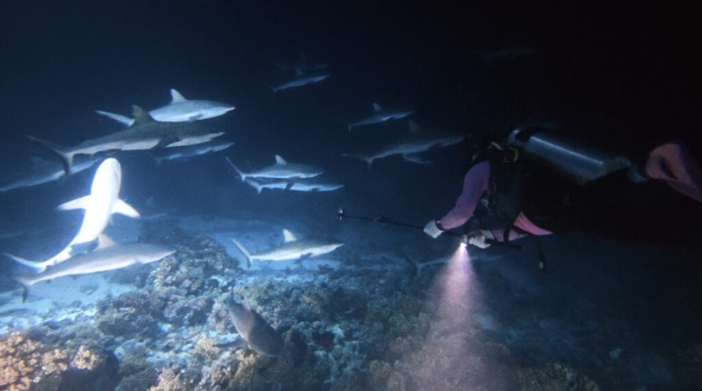 グレイリーフシャークの群れが視界いっぱいに広がる光景は、本当に圧巻でした。