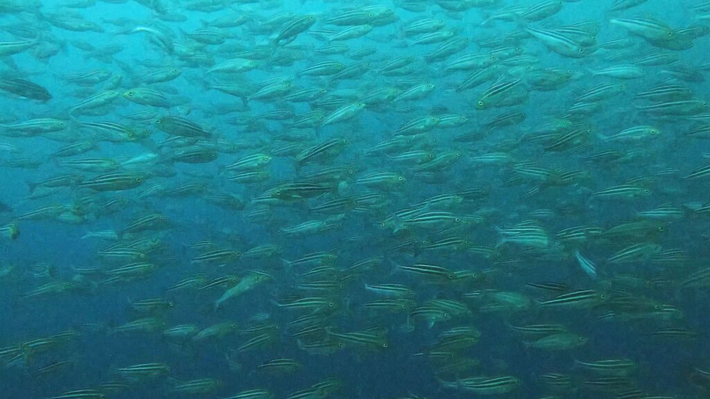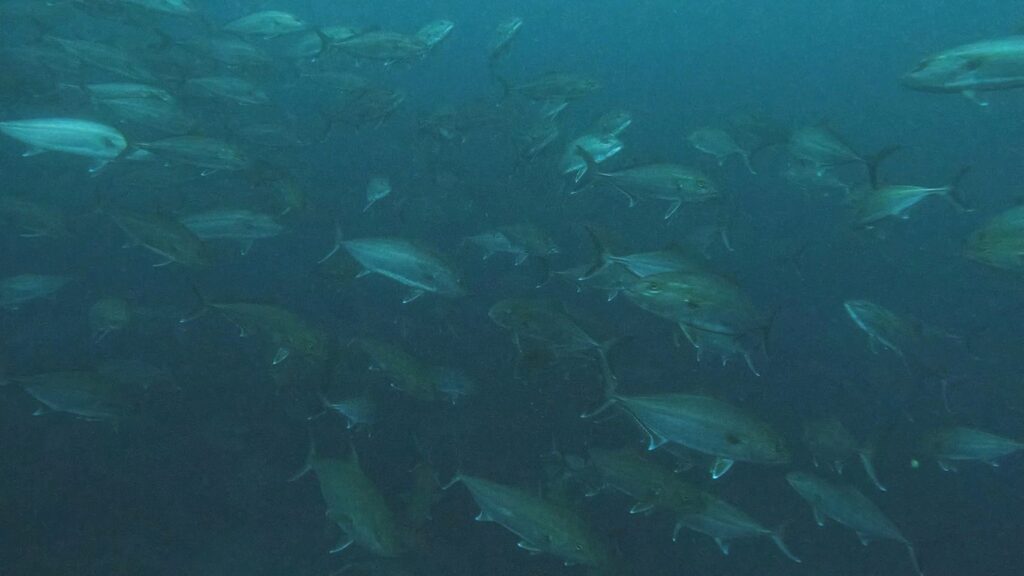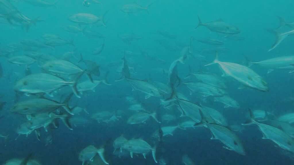 1mオーバー!100匹以上のカンパチが僕たちの周りをグルグルと。