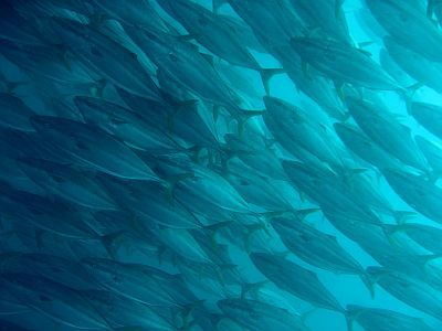 目撃情報のあった場所に行くと、オオカミ級のシマアジの群れ!