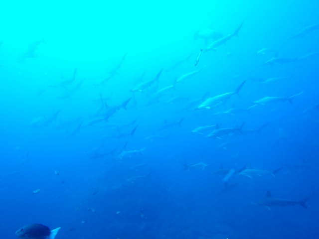 中層の激しい流れの中でワラサの群れに突っ込むハンマー群れ鑑賞!