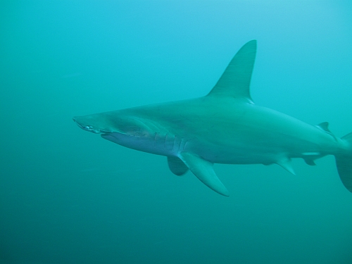目の前の根を悠然と泳ぐハンマー群れ!興奮を抑え慎重に近づきます、さらに近づきます。