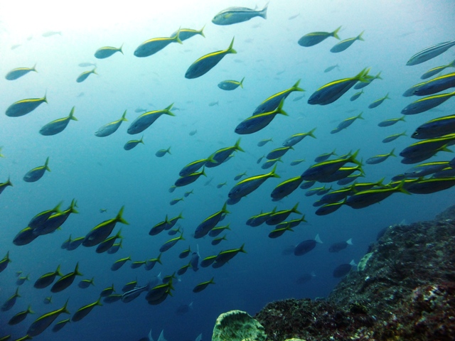 しかしその潮の当たる場所には数えきれないほどのタカベやイサキの群れ!