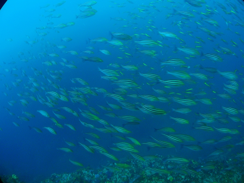 この時期名物のワラサの群れ、友好的なカンパチの群れや、