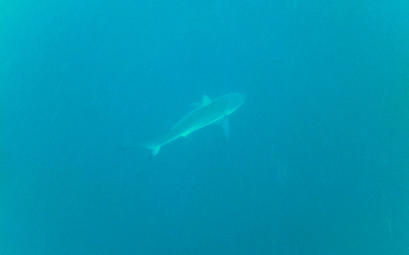 メジロザメがパラパラと出現し、特大のカンパチ群も登場!!