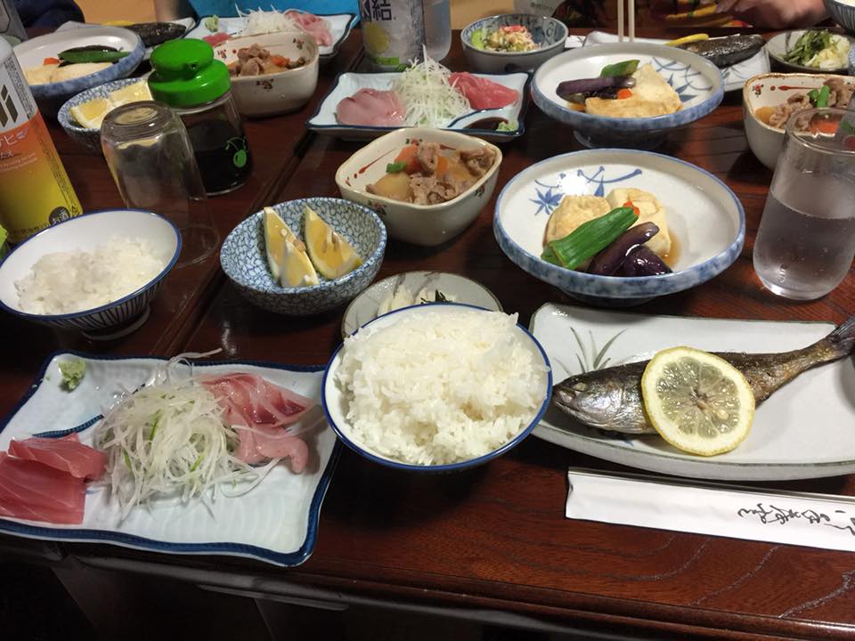 民宿で旬の美味しい魚に舌鼓を打ち、お酒をお供に大物好きダイバー同士の話は尽きませんが、