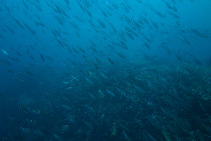 イサキとタカベの、ぐっちゃりした大群の真ん中を進みます。