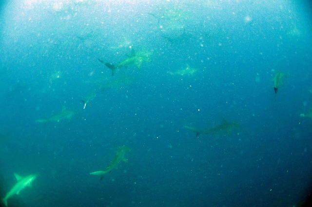追いかけるとそのにはハンマー!メジロザメも入り交じりのハンマーが
