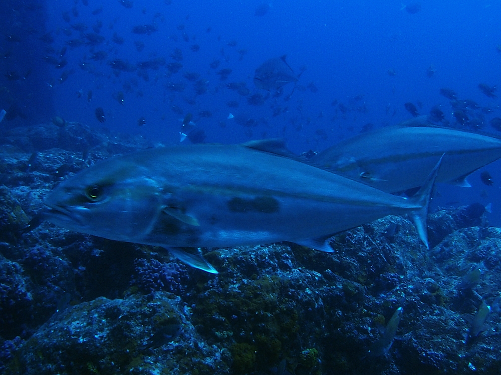 ワラサの群れ、カンパチの群れ、ハンマー群れを並走したりと