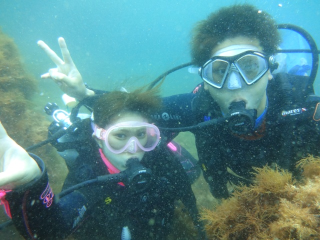 水中ではスズメダイの群れやイシダイの幼魚に巻かれびっくり!