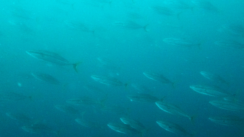 安全停止中も、タカサゴが舞う横で、カンパチの群れがアタックしてました♪