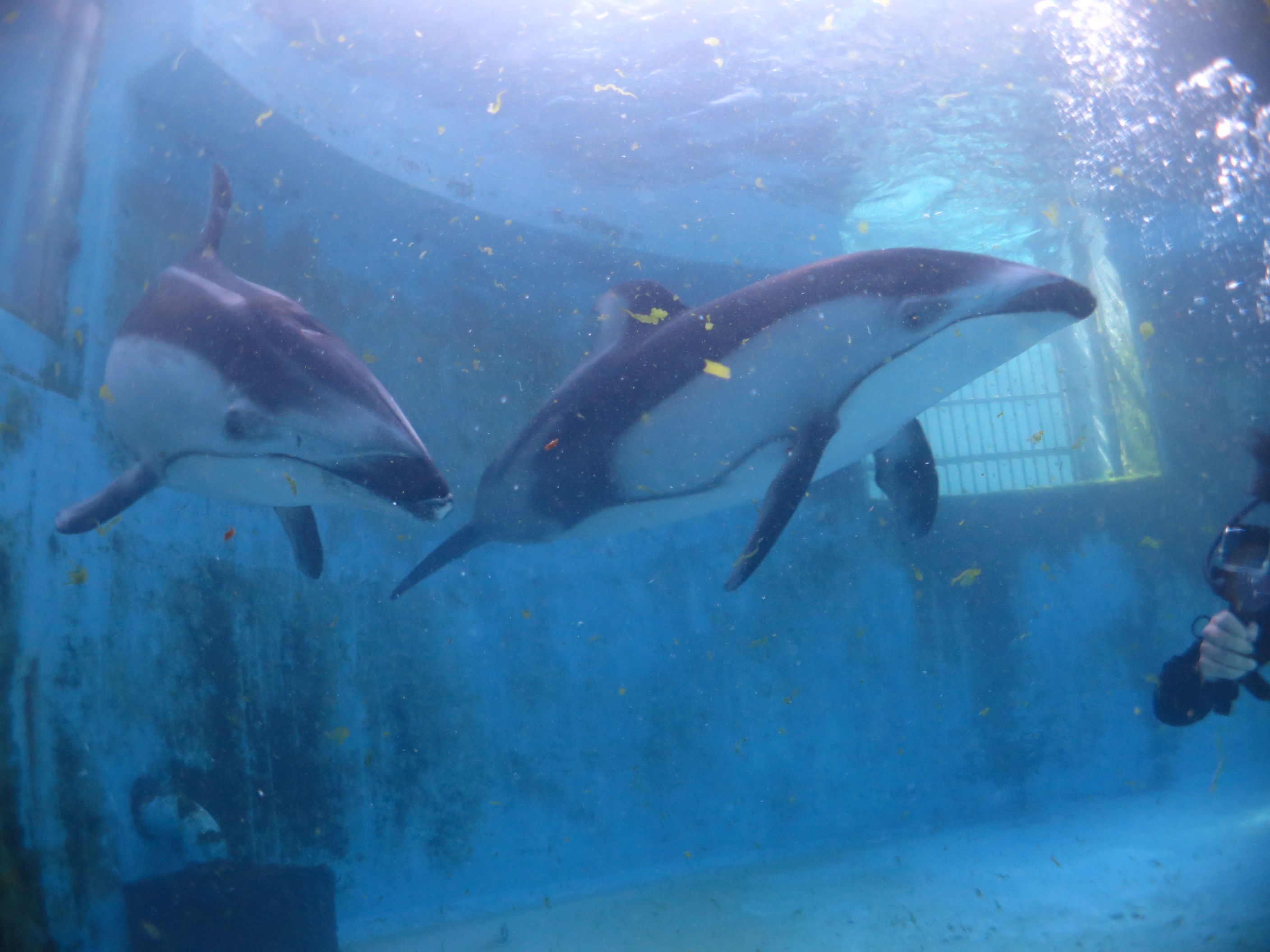 イルカが泳ぐ水圧に押されてふらついていた私達でした。笑
