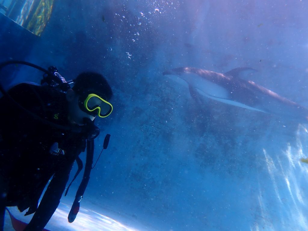 最初は初めての水中に緊張の様子でしたがひと目イルカを見たら緊張なんて吹っ飛んでいったみたいでしたw